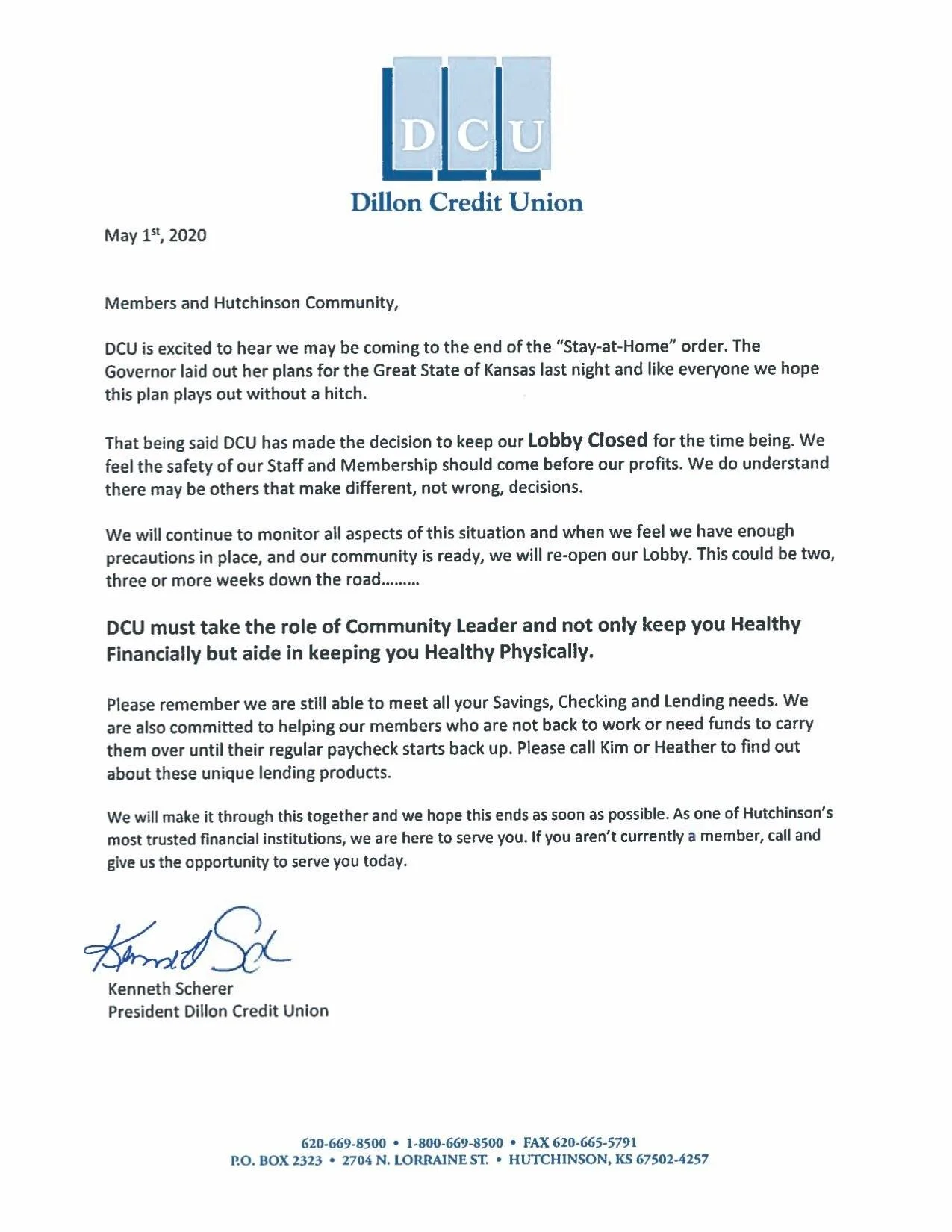 Dcu S Corona Virus Covid 19 Response Dillon Credit Union